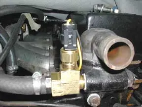 Adding fuel injection or just adding an electric fan requires the addition of a coolant temp sensor or fan switch. The TR6 coolant temp sender is British straight thread pipe rather than the more common US tapered pipe threads used in today’s cars. Fortunately British pipe is nearly the same thread pitch as US 3/8″ pipe thread, making the conversion pretty easy. Just below the thermostat, the hose nipple on the passenger side was removed. The socket was retapped to US 3/8″ NPT pipe. A pipe tap is tapered and will draw itself in by turning clockwise. Go in a little a bit then back off and turn in some more. Work it in about half way to 3/4 of the way down the threads of the tap. Blow the chips out of the new threads using compressed air. Carefully thread 3/8″ NPT brass street tee (NAPA WH 3750×6) in with Teflon tape on the threads. DO NOT OVERTIGHTEN as the fitting will act as a wedge, and if overtightened, can split the casting! The tee will go in a few threads and start to tighten with about half the threads still showing- remember they are tapered threads so it is OK. If the fitting doesn’t thread in far enough, remove the tee and run the tap in a bit further.